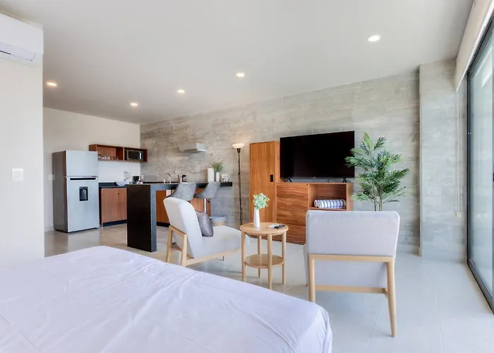 El apartamento brinda servicios de autoservicio con una cocina bien equipada y un comedor al aire libre. Los huéspedes también pueden tomar un autobús en la estación de autobuses R1-Rehoyada - Plaza Kukulcan, situada a 600 metros, para explorar Cancún.
